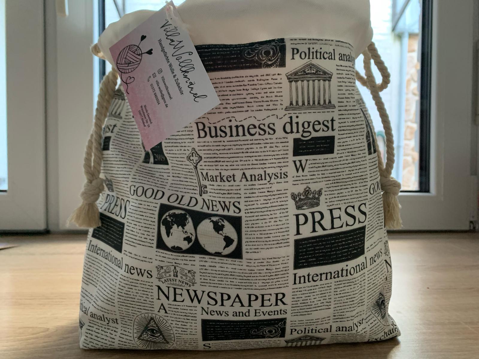 Große Projekttasche, Zubehör, Handarbeit, Zeitungsmotiv