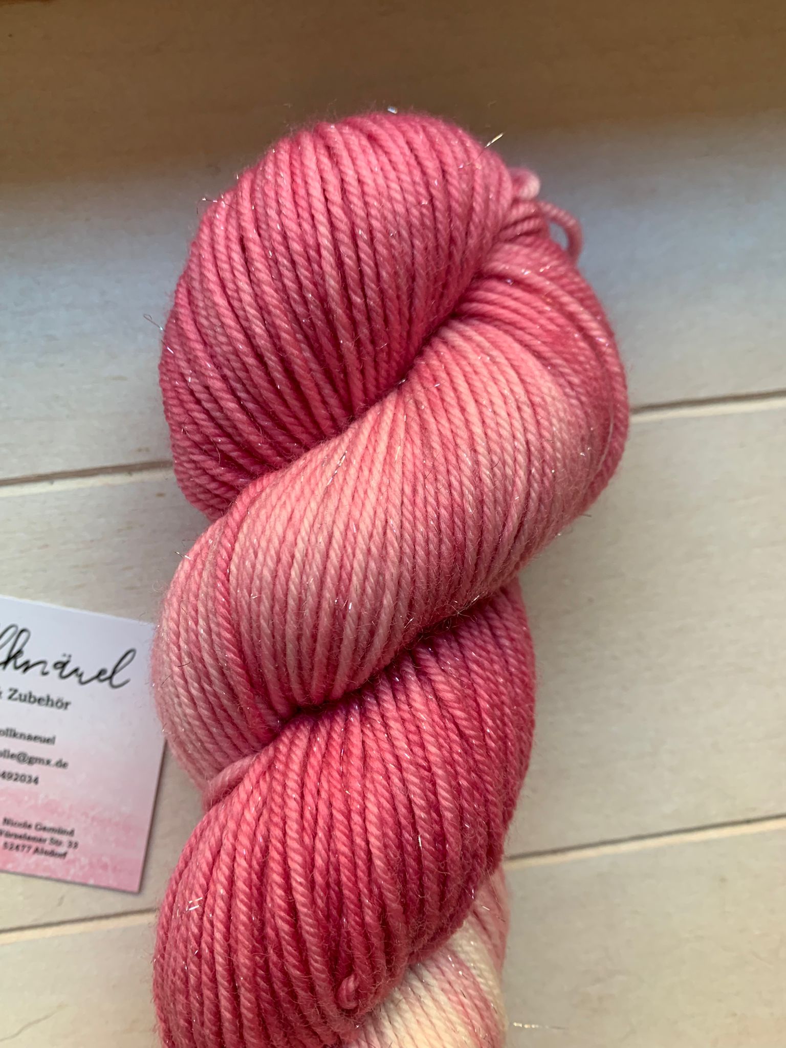 Unglaublich weiche handgefärbte Merinowolle mit leichtem Glitzer.