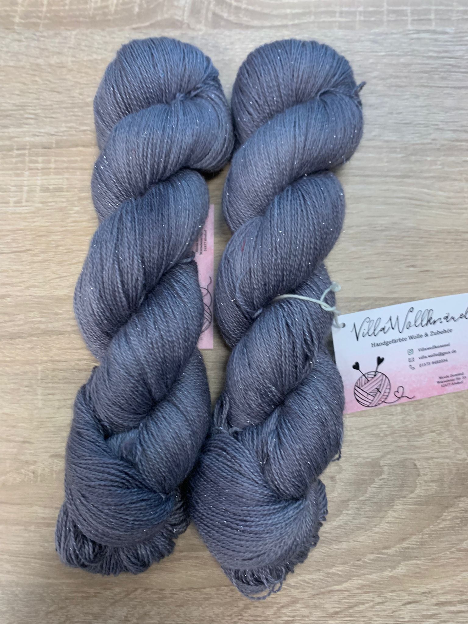 In Anlehnung an den Sternenhimmel habe ich hier ein wunderschönes Lace-Garn in dunkelgrau/anthrazit mit dezentem Stellina-Faden.